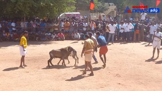 VIDEO : தேனியில் நடைபெற்ற கிடா முட்டு திருவிழா! - கலைஞர் நூற்றாண்டு விழாவையொட்டி கோலாகலம்!