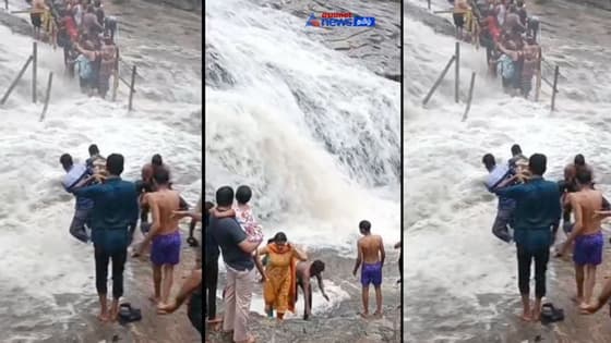 தேனி கும்பக்கரையில் ஏற்பட்ட திடீர் காட்டாற்று வெள்ளத்தில் சுற்றுலா பயணிகள் சிக்கிய சம்பவம் பெரும்பரபரப்பை ஏற்படுத்தியுள்ளது. இதுதொடர்பாக காட்சிகள் சமூக வலைத்தளங்களில் வேகமாக பரவிவருகிறது.