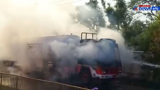 Watch : திருப்பூர் அருகே தீ பற்றி எரிந்த காலி கேஸ் டேங்கர் லாரி! பெரும் விபத்து தவிர்ப்பு!