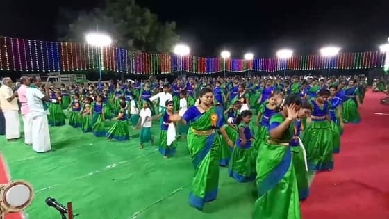 தாராபுரம் அருகே மணலூர் கிராமத்தில் சிறுவர், சிறுமியர் என 400-க்கும் மேற்பட்ட கும்மியாட்டக் குழுவினர் நடனம் ஆடி அசத்தல்.