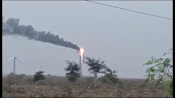 பல்லடம் அருகே இடி விழுந்ததில் தீ பற்றி எரிந்த காற்றாலை