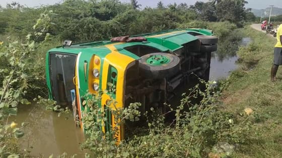 திருத்தணியில் கால்வாய்க்குள் பாய்ந்த மினி பேருந்து; 10 பயணிகள் படுகாயம்
