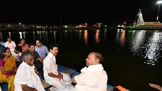 திருவாரூர் கமலாலயக் குளத்தின் வடக்குக் கரையிலிருந்து படகின் மூலம் குளத்தின் நடுவில் சென்ற முதலமைச்சர் மு.க.ஸ்டாலின், கமலாலய குளம் தொடர்பாக தனது பழைய நினைவுகளை பகிர்ந்துள்ளார்.