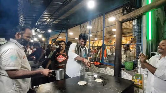 நான் தோசை சுட வரவில்லை என கூறிய அண்ணாமலை திருச்சியில் அண்ணாமலை புரோட்டா சுடும் காட்சி