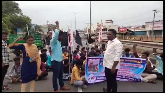 அதன் ஒரு பகுதியாக இந்திய மாணவர் சங்கம் சார்பில் திருவெறும்பூர் அருகே உள்ள காட்டூர் தனலட்சுமி கல்லூரி முன்பு திருச்சி, தஞ்சை தேசிய நெடுஞ்சாலையில் மாணவர்கள் மறியல் போராட்டத்தில் ஈடுபட்டனர். போராட்டத்திற்கு மாவட்ட செயலாளர் சூர்யா தலைமை தாங்கினார். இந்த போராட்டத்தில் காட்டூர் உருமு தனலட்சுமி கல்லூரியைச் சேர்ந்த மாணவன, மாணவிகள் கலந்து கொண்டனர். அவர்களிடம் திருவெறும்பூர் காவல் துறையினர் சமரசம் செய்து கலைந்து போக செய்தனர்.