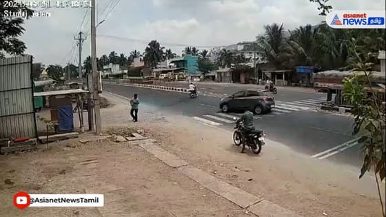 அலட்சியமாக சாலையை கடந்த பைக்; விபத்தை தவிர்க்க நினைத்தவர் விபத்தில் சிக்கிய பரிதாபம்