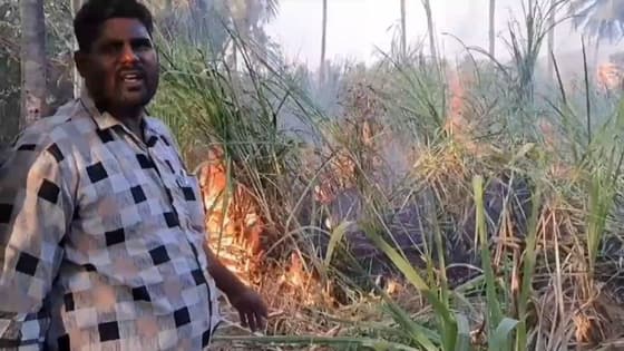 தீயை கட்டுப்படுத்த முடியாத நிலையில் 3 ஏக்கரில் பயிரிடப்பட்டிருந்த மொத்த கரும்பும் தீயில் கருகியதாக விவசாயிகள் தெரிவித்துள்ளனர். விவசாயி காதர் பாஷா தனது குடும்பத்துடன் கொழுந்து விட்டு எரியும் கரும்பு தோட்டத்தில் தீயை அணைக்க கடும் முயற்சி செய்தும் பலனளிக்காமல் போகவே தீயை அணைக்க முடிய வில்லையே என அவர் கதறி அழும் காட்சிகள் மனதை உருக்குவதாக இருந்தது.