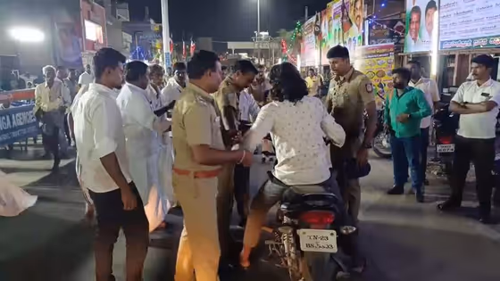 திருப்பத்தூரில் அதிமுகவினர் நடத்திய பொதுக்கூட்டத்தில் முன்னாள் அமைச்சர் பேசி கொண்டிருந்தபோது மதுபோதையில் அதிக சத்தத்துடன் இருசக்கர வாகனத்தில் சென்ற வாலிபரை அடித்து துவம்சம் செய்த அதிமுகவினர்.