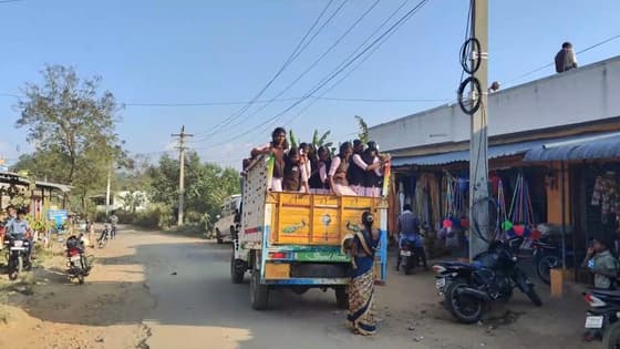 திருப்பத்தூரில் பள்ளி மாணவிகள் மலைப்பாதையில் ஆபத்தை உணராமல் சரக்கு வாகனத்தில் பயணித்து பள்ளிக்கு செல்லும் வீடியோ இணையத்தில் வேகமாக பரவி வருகிறது.