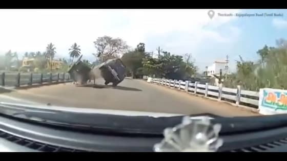 இதில் மாட்டு வண்டி, கார் இரண்டும் தூக்கி வீசப்படும் சிசிடிவி காட்சிகள் பின்னே வந்த காரின் கண்காணிப்பு கேமராவில் பதிவாகியுள்ளது. தற்போது இந்த விபத்து தொடர்பான சிசிடிவி காட்சிகள் வெளியாகி உள்ளது. கார் மற்றும் மாட்டு வண்டியில் இருந்த நபர்களுக்கு பலத்த காயம் ஏற்பட்டுள்ளது. இது தொடர்பாக காவல்துறையினர் வழக்கு பதிவு செய்து விசாரணை நடத்தி வருகின்றனர்.