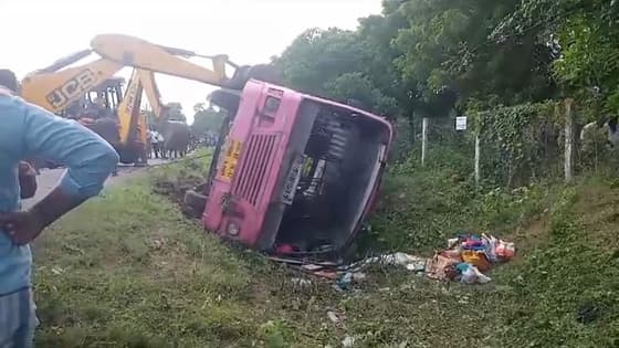 கட்டுப்பாட்டை இழந்த அரசு பேருந்து கவிழ்ந்து கல்லூரி மாணவி பலி, 10 பேர் படுகாயம்