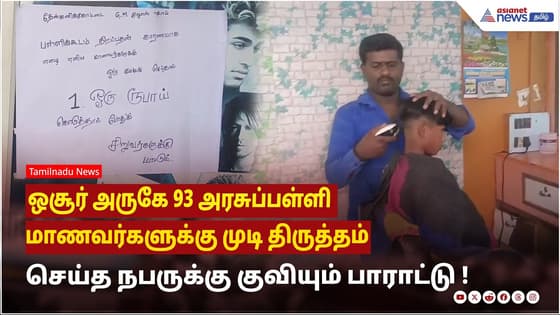 ஒசூர் அருகே 93 அரசுப்பள்ளி மாணவர்களுக்கு முடி திருத்தம் செய்த நபருக்கு குவியும் பாராட்டு !