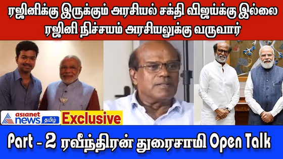உங்கள் ஏசியாநெட் நியூஸ் தமிழுக்கு அரசியல் விமர்சகர் ரவீந்திரன் துரைசாமி அளித்த பிரத்தியேக நேர்காணலில், ரஜினி, விஜய் எதிர்கொள்ளும் அரசியல் பிரச்சனைகள், யார் அடுத்த சூப்பர் ஸ்டார் உள்ளிட்ட பல்வேறு கருத்துகளை பேசியுள்ளார்.