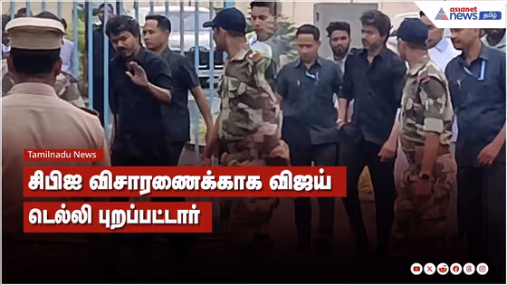தமிழக வெற்றி கழகத்தின் தலைவரும் நடிகருமான விஜய்க்கு சிபிஐ சம்மன் அனுப்பியது 12ஆம் தேதி சிபிஐ அலுவலகத்தில் டெல்லியில் ஆஜராகும் படி சம்மன் அனுப்பிய நிலையில் சிபிஐ அலுவலகத்தில் ஆஜர் ஆவதற்காக தமிழக வெற்றி கழகத்தின் தலைவர் விஜய் தனி விமான மூலம் சென்னை விமான நிலையத்தில் இருந்து புறப்பட்டு சென்றார் அவருடன் ஆறு அர்ஜுன் நிர்மல் குமார் உள்ளிட்டோர் கூறப்பட்டு சென்றனர்.