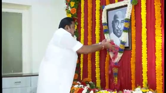 தமிழக எதிர்க்கட்சித் தலைவரும், அதிமுக பொதுச்செயலாளருமான எடப்பாடி பழனிசாமி முன்னாள் முதல்வர் காமராஜரின் உருவப்படத்திற்கு மலர்தூவி மரியாதை செலுத்தினார்.