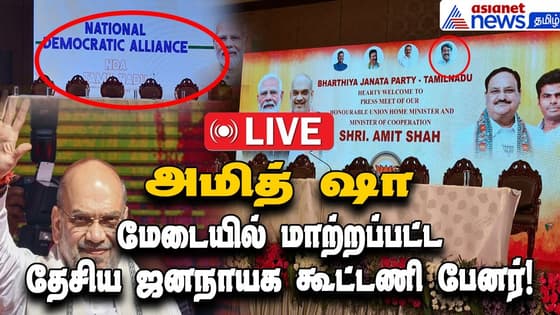 சென்னையில் அமித் ஷா பங்கேற்கும் மேடையில் மாற்றப்பட்ட தேசிய ஜனநாயக கூட்டணி பேனர்!