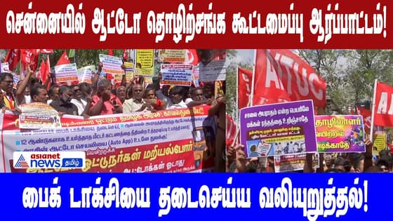 சென்னையில் பைக் டாக்சியை தடைசெய்யக் கோரியும், ஆட்டோ கட்டணங்களை அதிகரிக்க வேண்டியும் ஆட்டோ தொழிற்சங்க கூட்டமைப்பு சார்பில் ஆர்ப்பாட்டம் நடந்தது. அதில் ஏராளமான ஆட்டோ ஓட்டுனர்கள் கலந்து கொண்டு ஆர்பாட்டத்தில் ஈடுபட்டனர்.