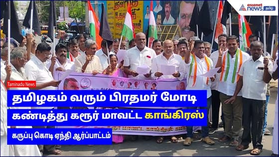 தமிழகம் வரும் பிரதமர் மோடியை கண்டித்து கரூர் மாவட்ட காங்கிரஸ் கருப்பு கொடி ஏந்தி ஆர்ப்பாட்டம்!