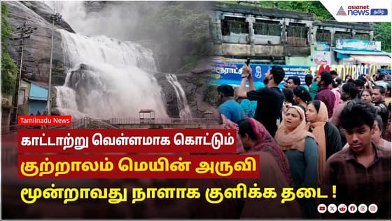 காட்டாற்று வெள்ளமாக கொட்டும் குற்றாலம் மெயின் அருவி...மூன்றாவது நாளாக குளிக்க தடை !