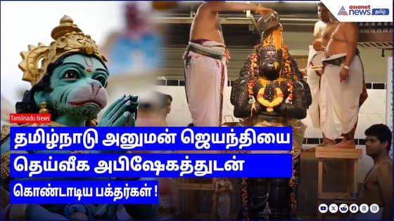 தமிழ்நாடு அனுமன் ஜெயந்தி பண்டிகையை முன்னிட்டு அனுமன் ஜெயந்தியை தெய்வீக அபிஷேகத்துடன் பக்தர்கள் கொண்டாடினார்கள் . இதில் அநேக பக்தர்கள் கலந்துகொண்டு அனுமன் ஜெயந்தி தெய்வீக அபிஷேகத்தை கண்டு மகிழ்ந்து வழிபட்டும் வந்தனர் .