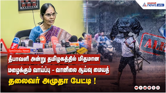 தீபாவளி அன்று தமிழகத்தில் மிதமான மழைக்கும் வாய்ப்பு ! வானிலை ஆய்வு மையத் தலைவர் அமுதா பேட்டி
