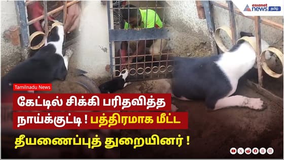 கேட்டில் சிக்கி பரிதவித்த நாய்க்குட்டி ! பத்திரமாக மீட்ட தீயணைப்புத் துறையினர் ...வைரல் வீடியோ !