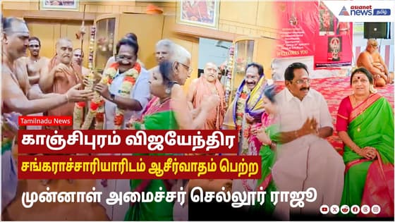 காஞ்சிபுரத்தில் முன்னாள் அமைச்சர் செல்லூர் ராஜூ அவரது மனைவி விஜயேந்திர சங்கராச்சாரியாரிடம் ஆசீர்வாதம் பெற்றனர் .