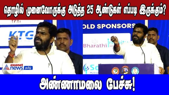 அடுத்த 25 ஆண்டுகள் இந்தியாவில் தொழில் முனைவோருக்கு எப்படி இருக்கும்? எவ்வித வளர்ச்சிகள் நடைபெறும் என்பது பற்றி தொழில் முனைவோர் கருத்தரங்கில் அண்ணாமலை பேசினார்