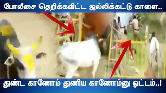 போலீசை தெறிக்கவிட்ட ஜல்லிக்கட்டு காளை.. துண்ட காணோம் துணிய காணோம்னு ஓட்டம்..! வைரல் வீடியோ