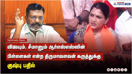 விஜயும், சீமானும் ஆர்எஸ்எஸ்ஸின் பிள்ளைகள் என்ற திருமாவளவன் கருத்துக்கு குஷ்பு பதில்
