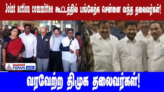 தொகுதி மறுசீரமைப்புக்கு எதிரான கூட்டு நடவடிக்கை குழு கூட்டம் சென்னை சோழா ஹோட்டலில் நடைபெறுகிறது. இதில்பங்கேற்க பல்வேறு மாநிலங்களை சேர்ந்த தலைவர்களுக்கு அழைப்பு விடுக்கப்பட்டது. இதை தொடர்ந்து கூட்டத்தில் பங்கேற்பதற்காக பல்வேறு மாநில தலைவர்கள் சென்னை வந்தனர். அவர்களை திமுக தலைவர்கள் வரவேற்றனர்.