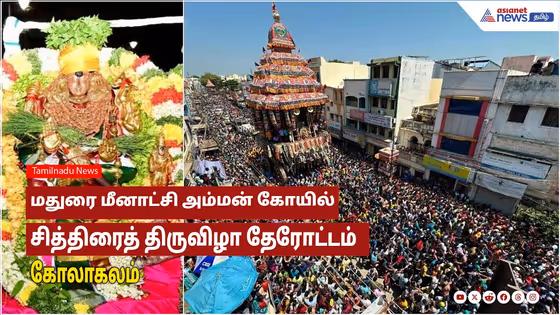 மதுரை மீனாட்சி அம்மன் கோயில் சித்திரைத் திருவிழாவின் 11-ம் நாளான இன்று சிகர நிகழ்ச்சியான தேரோட்டத் திருவிழா கோலாகலமாக தொடங்கியது. பக்தர்கள் பஞ்ச வாத்தியங்கள் முழங்க ஆயிரக்கணக்கான பக்தர்கள் பங்கேற்று தேர்களை வடம் பிடித்து இழுத்தனர்.மதுரை மீனாட்சி அம்மன் கோயில் சித்திரைத் திருவிழா ஏப்.29-ம் தேதி கொடியேற்றத்துடன் தொடங்கியது. ஏப்.29 முதல் மே 10-ம் தேதி வரை 12 நாட்கள் திருவிழா நடைபெறுகிறது.