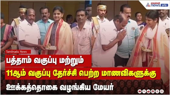 பத்தாம் வகுப்பு மற்றும் 11ஆம் வகுப்பு தேர்ச்சி பெற்ற மாணவிகளுக்கு ஊக்கத்தொகை வழங்கிய மேயர் !