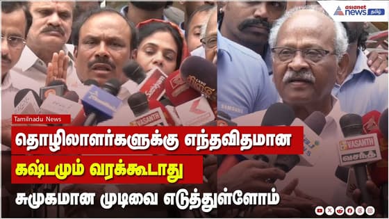 மாண்புமிகு முதல்வர் வழிகாட்டுதலின்படி தொழிலாளர்களுக்கு எந்தவிதமான குறைவும் வராது தொழிலாளர்களுக்கு எந்த விதமான கஷ்டமும் வரக்கூடாது சுமுகமான முடிவை எடுத்துள்ளோம்