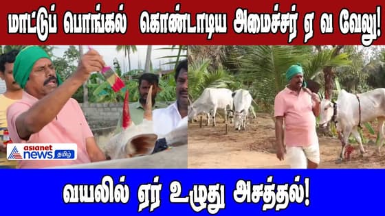 மாட்டுப் பொங்கல் கொண்டாடிய அமைச்சர் ஏ வ வேலுவயலில் ஏர் உழுது விவசாயம் செய்து அசத்தல்!