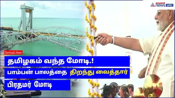 ந்தியாவின் முதல் செங்குத்து தூக்கு கடல் பாலமான புதிய பாம்பன் ரயில் பாலத்தை திறந்து வைத்து, சாலை பாலத்திலிருந்து ஒரு ரயிலையும், கப்பலையும் கொடியசைத்து தொடங்கி வைத்தார். பாலத்தில் நடைபெறும் போக்குவரத்து செயல்பாட்டையும் பார்வையிட்டார் .புதிய பாம்பன் ரயில் பாலத்தை திறந்து வைக்கும் பிரதமர், ராமேஸ்வரம்-தாம்பரம் (சென்னை) இடையே புதிய ரயில் சேவையை கொடியசைத்துத் தொடங்கி வைத்தார்.