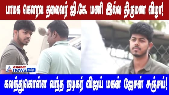 பாமக கௌரவ தலைவர் ஜி.கே. மணி இல்ல திருமண விழா!கலந்துகொள்ள வந்த தவெக தலைவர் விஜய் மகன் ஜேசன் சஞ்சய்!