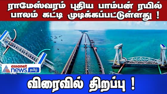 ராமேஸ்வரம், தமிழ்நாடு: ராமேஸ்வரம் தீவை பிரதான நிலப்பகுதியுடன் இணைக்கும் புதிய பாம்பன் ரயில் பாலம் கட்டி முடிக்கப்பட்டுள்ளது. இந்தியாவின் முதல் செங்குத்து லிப்ட் கடல் பாலம் ஏப்ரல் மாதத்திற்குள் செயல்பாட்டுக்கு வரும் என்று எதிர்பார்க்கப்படுகிறது, இது ரயில் இணைப்பை மீட்டெடுத்து இப்பகுதியில் போக்குவரத்தை மேம்படுத்தும்.