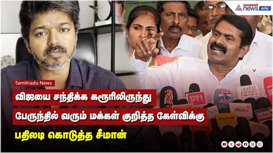 விஜயை சந்திக்க கரூரிலிருந்து பேருந்தில் வரும் மக்கள் குறித்த கேள்விக்கு பதிலடி கொடுத்த சீமான்