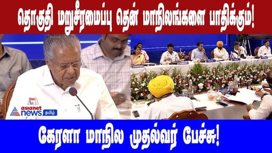 சென்னை சோழா ஹோட்டலில் நடைபெற்ற தொகுதி மறுசீரமைப்புக்கு எதிரான கூட்டு நடவடிக்கை குழு கூட்டத்தில் பல்வேறு மாநில முதல்வர்கள் கலந்து கொண்டு ஆலோசனை செய்தனர்.அதில் பேசிய கேரளா மாநில முதல்வர் தொகுதி மறுசீரமைப்பு தென் மாநிலங்களை பாதிக்கும் அதை தடுக்க நாம் அனைவரும் ஒன்றிணைந்து செயல்பட வேண்டும் என்றார்.