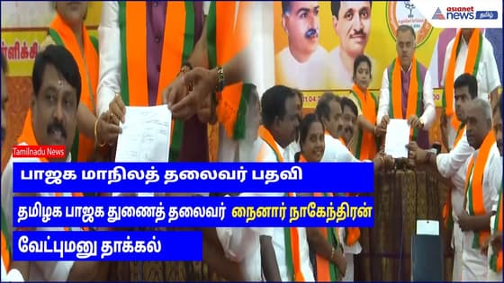 தமிழக பாஜக மாநிலத் தலைவர் பதவிக்கான தலைவர் தேர்தலில் தமிழக பாஜக துணைத் தலைவர் நைனார் நாகேந்திரன் வேட்புமனு தாக்கல் செய்தார். அப்போது தற்போதைய தலைவர் அண்ணாமலை மற்றும் பாஜக மூத்த தலைவர்கள் உடன் இருந்தனர்.