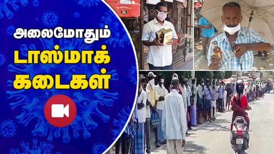 கண்ணுக்கெட்டா தூரம்வரை வரிசைகட்டி நிற்கும் குடிமகன்கள்..! பொறுமை காத்து வாங்கி செல்லும் வீடியோ..