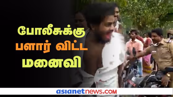கணவனின் வாயை உடைத்த போலீஸ்.. எஸ்.ஐ-க்கு பளார் விட்ட மனைவி..! பரபரப்பு வீடியோ