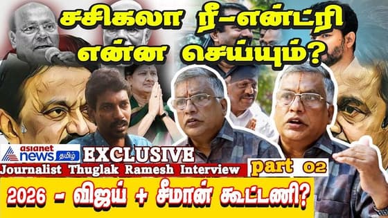 வரும் 2026 தமிழக சட்டமன்றத் தேர்தலில் அதிமுகவுக்கு சசிகலா திரும்பவும் வந்தால் என்ன ஆகும், விஜய் சீமான் கூட்டணி சாத்தியமா?, அரசியல் களத்தில் அடுத்து நிகழப்போகும் மாற்றம் குறித்தும் பிரபல பத்திரிக்கையாளர் துக்ளக் ரமேஷ் ஏசியாநெட் நடத்திய சிறப்பு நேர்காணல் இதோ..