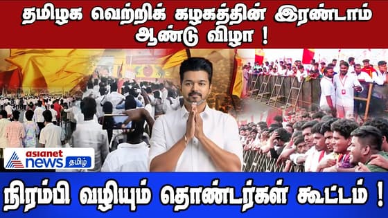 மகாபலிபுரத்தில் தனது கட்சியான தமிழக வெற்றிக் கழகத்தின் இரண்டாம் ஆண்டு விழா நடைபெறும் இடத்திற்கு நடிகர் விஜய் வந்தார். இந்நிலையில் தமிழக வெற்றிக் கழகத்தின் இரண்டாம் ஆண்டு விழாவிற்கு கூட்டம் கூட்டமாக வருகை தரும் தமிழக வெற்றிக் கழகத்தின் கட்சி தொண்டர்கள் மற்றும் ரசிகர்கள் .