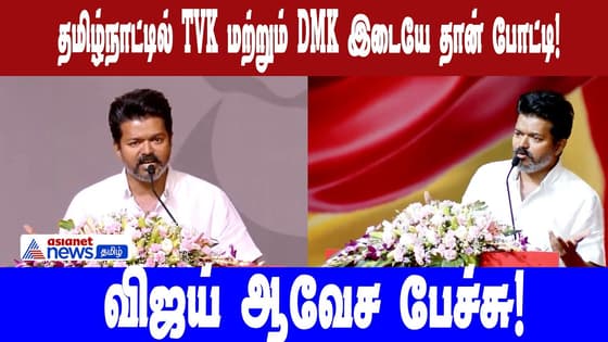 இதுவரை தமிழகம் காணாத ஒரு தேர்தலை அடுத்தாண்டில் தமிழகம் காணப் போகிறது. இரண்டே இரண்டு பேருக்கு இடையில் தான் போட்டி. த.வெ.க.,வுக்கும், தி.மு.க.,வுக்கும் தான் தேர்தலில் போட்டி நிலவும்,'' என்று கட்சி பொதுக்குழுவில் நடிகர் விஜய் பேசினார். தமிழகத்தில் த.வெ.க., ஆட்சி அமைந்ததும் பெண்கள் பாதிப்பை 100 சதவீதம் உறுதி செய்ய வேண்டும். சட்டம் ஒழுங்கு நல்லா வைத்து இருப்போம். கல்வி, சுகாதாரம் அனைத்திலும் கவனம் செலுத்துவோம். அதுவும் எல்லோருக்கும் எல்லாம் சமமாக கிடைக்கிற மாதிரி செய்வது தான் எங்களுடைய டார்கெட். எப்பொழுதும் உழைக்கிறவர்கள் பக்கம் தான். நமது தமிழகம் இயற்கை நிறைந்த பூமி. மக்களை பாதிக்கிற மாதிரி திட்டங்களை செயல்படுத்தாதீர்கள். இவ்வாறு விஜய் பேசினார்