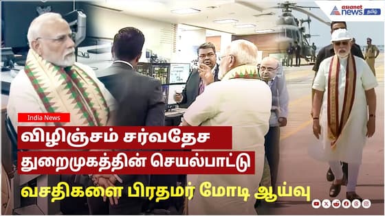 விழிஞ்சம் துறைமுக திறப்பு விழா இன்று நடைபெற்றது. இதில் கலந்துகொள்வதற்காக பிரதமர் நரேந்திர மோடி நேற்று திருவனந்தபுரத்திற்கு விமானத்தில் வந்தார் .அவரை விமான நிலையத்தில் முதல்-மந்திரி பினராயி விஜயன் உள்ளிட்டோர் பூச்செண்டு கொடுத்து வரவேற்றனர். இந்நிலையில் விழிஞ்சம் சர்வதேச துறைமுகத்தை திறந்து வைத்தார் பிரதமர் மோடி, திறப்பு விழாவிற்கு பிறகு விழிஞ்சம் துறைமுகத்தின் செயல்பாட்டு வசதிகளை பிரதமர் ஆய்வு செய்தார் .For More Local News, Breaking News, Kollywood Movie News & updates and videos from Tamil Nadu, Puducherry, India, and around the world in Tamil Be a Part of Asianet News Network. For More, visit ►►https://tamil.asianetnews.comSubscribe: https://www.youtube.com/channel/UCruehWR8BCDIK6qbjPhqL6gWebsite: https://tamil.asianetnews.com/Facebook: https://www.facebook.com/AsianetNewsTamil?mibextid=ZbWKwLInstagram: https://www.instagram.com/asianetnewstamil?igsh=MThzMzFsbXV2Y25vaQ==X (Twitter): https://x.com/AsianetNewsTMWhatsapp: https://whatsapp.com/channel/0029Va9TFCWB4hdYZOoYCK2D