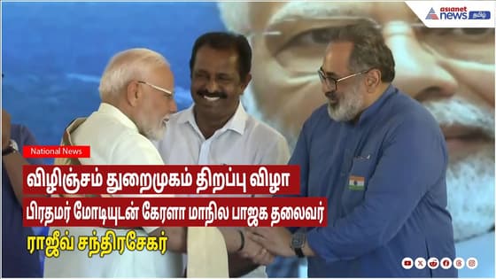 விழிஞ்சம் துறைமுகம் திறப்பு விழாவில் பிரதமர் மோடியுடன் கேரளா மாநில பாஜக தலைவர் ராஜீவ் சந்திரசேகர்