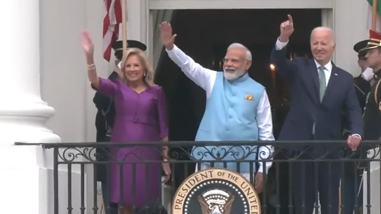 வெள்ளை மாளிகைக்குச்ச சென்ற பிரதமர் மோடிக்கு 19 துப்பாக்கி குண்டுகள் முழங்க வரவேற்பு அளிக்கப்பட்டது. இருநாட்டு தேசிய கீதங்களும் இசைக்கப்பட்டன. பிரதமர் மோடியை வரவேற்றுப் பேசிய அதிபர் ஜோ பைடன், "நான் துணை ஜனாதிபதியாக இருந்ததில் இருந்து நாங்கள் ஒன்றாக நிறைய நேரம் செலவிட்டுள்ளோம்... உலக சூழ்நிலையில், இந்தியா-அமெரிக்கா இணைந்து செயல்படுவது அவசியம்" என்றார்.