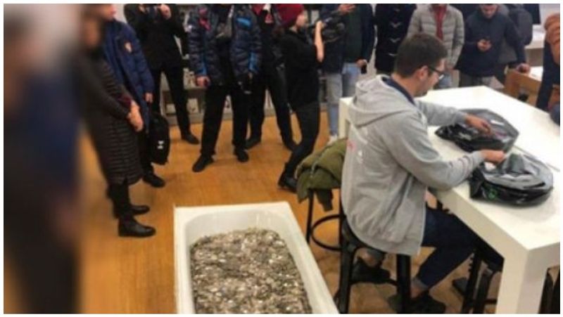 மாஸ்கோவை சேர்ந்த இளைஞர் ஒருவர், apple i phone வாங்குவதற்காக நாணயங்களை சேகரிக்கும் முடிவை எடுத்து உள்ளார். இதற்காக அவருடைய நண்பர்கள் உதவியுடன் குளியல் தொட்டியில் நாணயங்களை சேகரித்து வந்துள்ளார்.